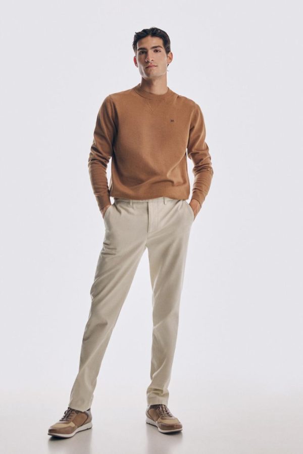 Hombre Pedro Del Hierro Jerséis Y Cárdigans | Jersey Cuello Caja De Algodón Beige