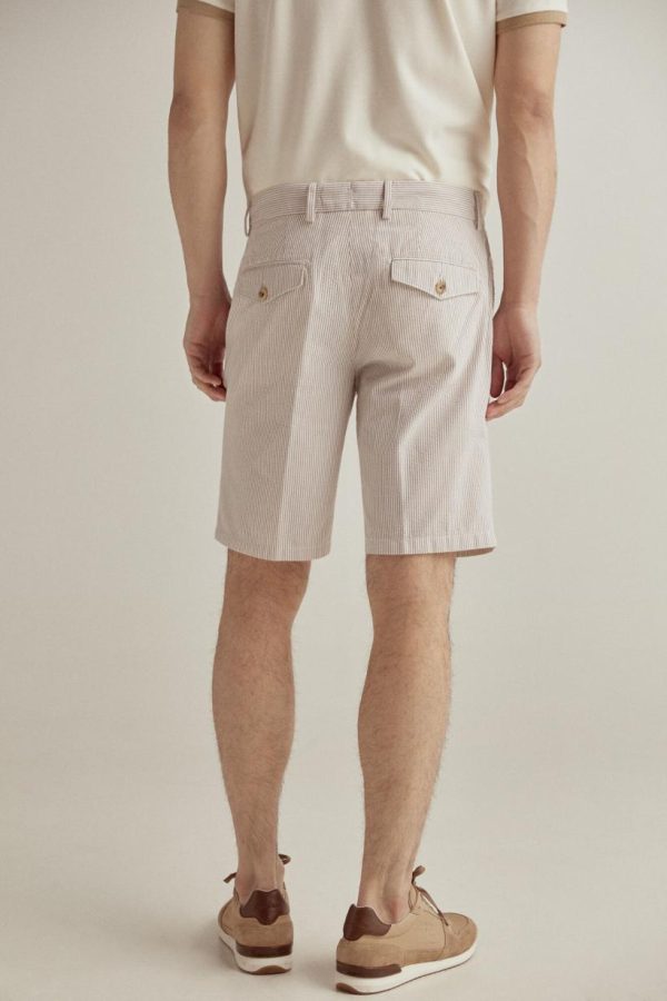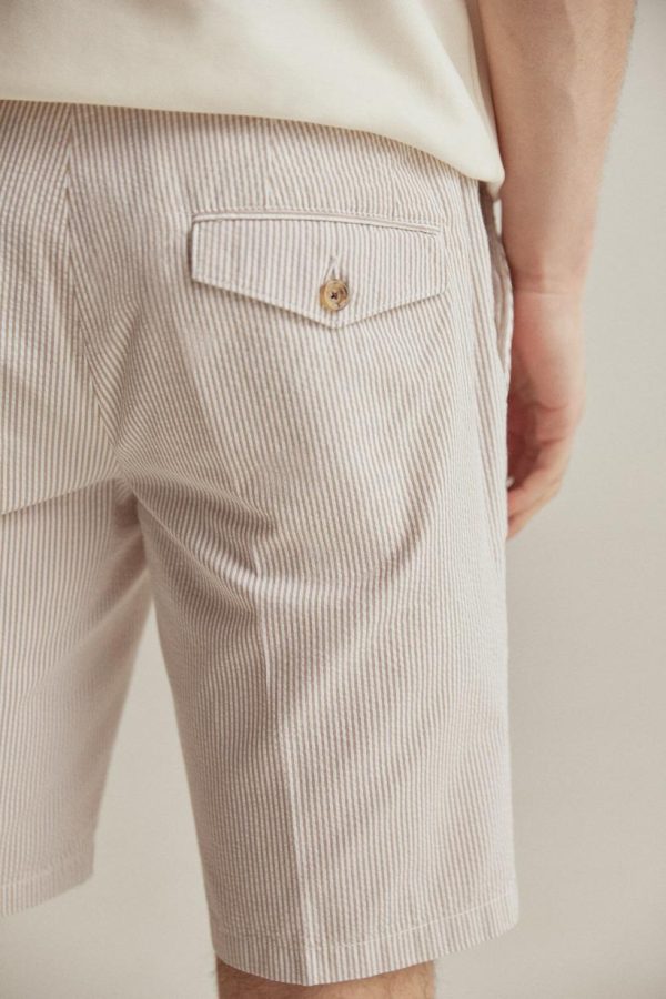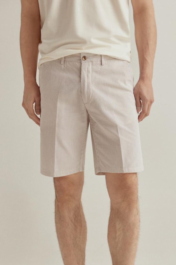 Hombre Pedro Del Hierro Pantalones | Bermuda Textura Seersucker Beige
