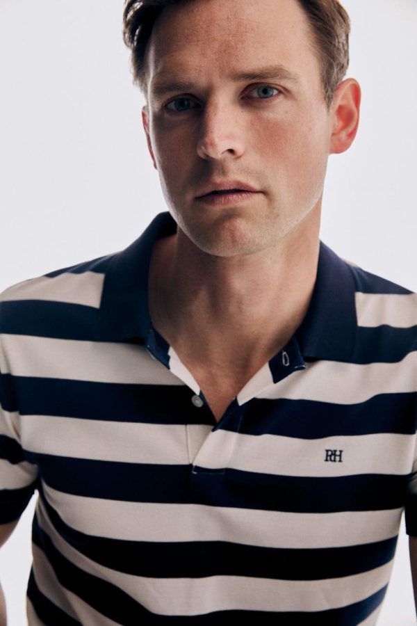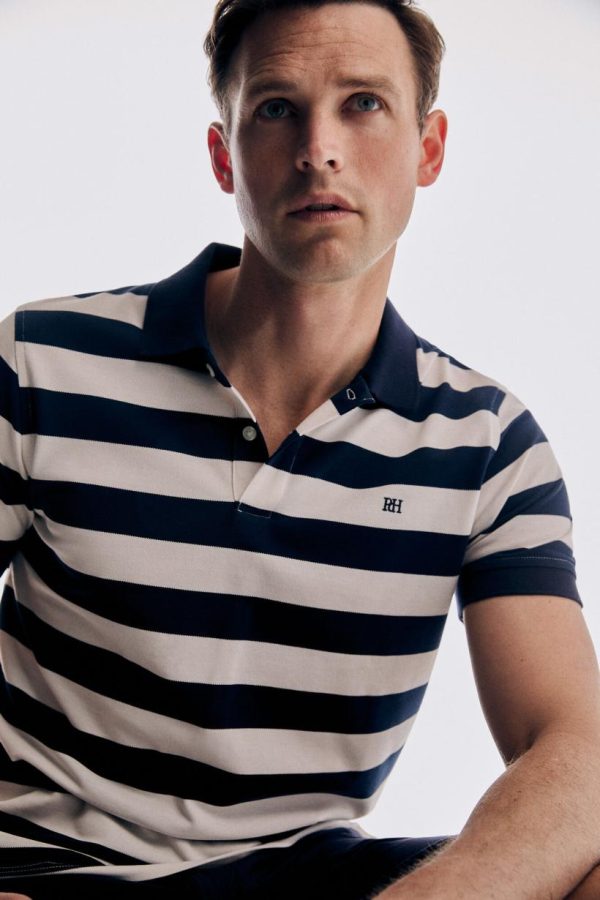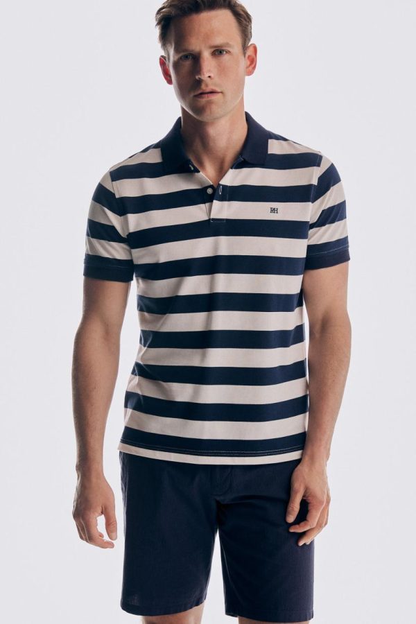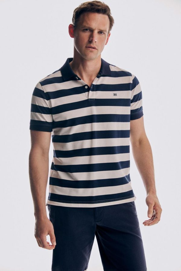 Hombre Pedro Del Hierro Polos | Polo Rayas Manga Corta Azul