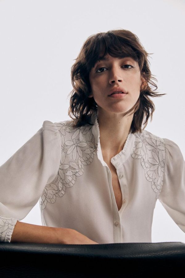 Mujer Pedro Del Hierro Blusas | Blusa Eco Vero Con Canesú De Encaje Beige