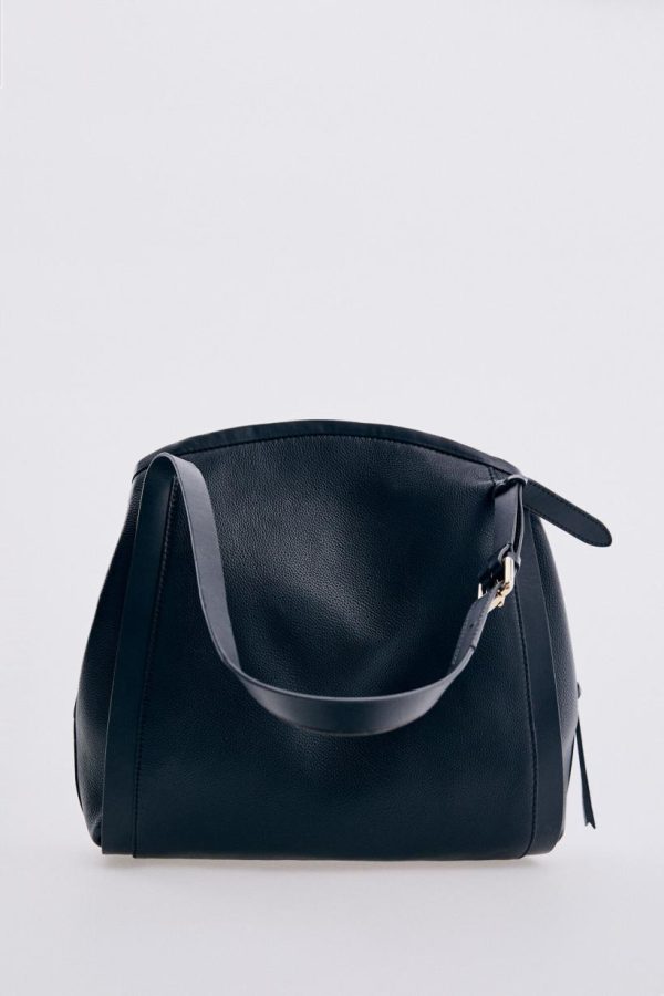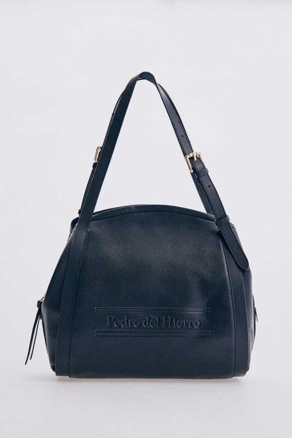 Mujer Pedro Del Hierro Bolsos | Bolso Shoulder En Piel Negro Negro quantity