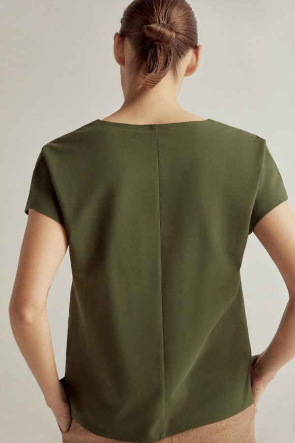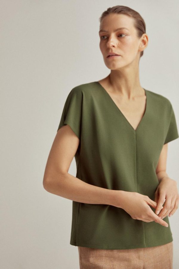 Mujer Pedro Del Hierro Camisetas | Camiseta Amplia Cuello Pico Manga Corta Caída Verde