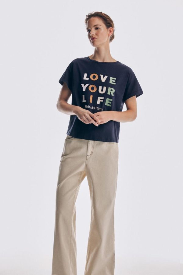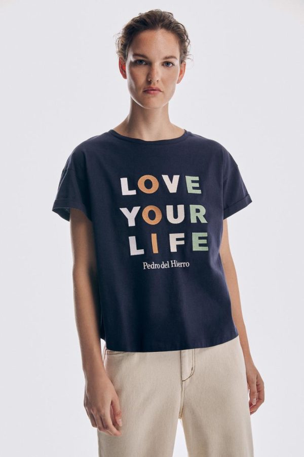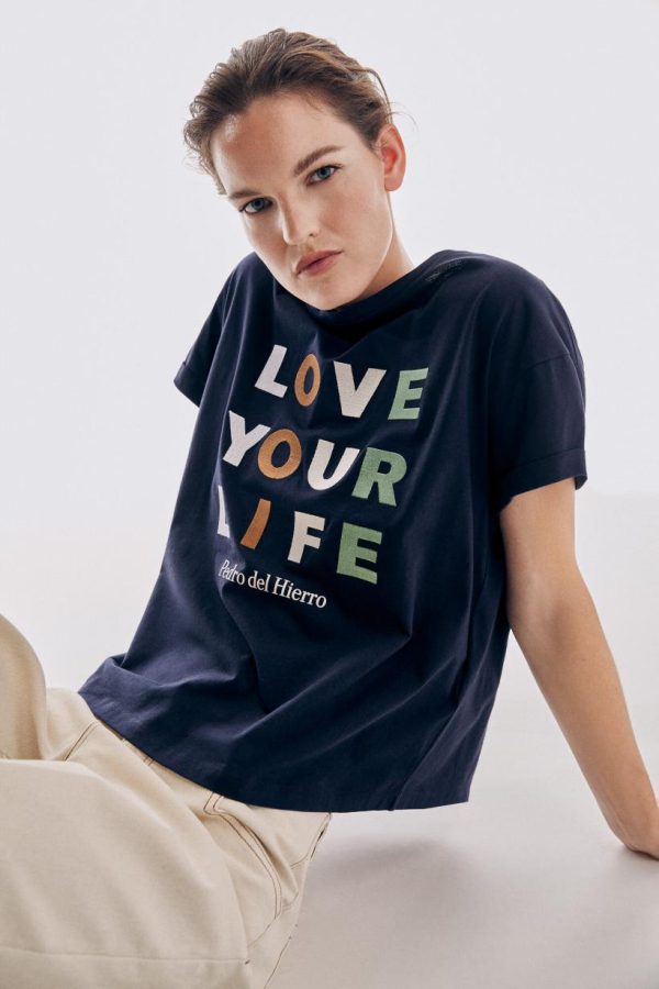 Mujer Pedro Del Hierro Camisetas | Camiseta Manga Corta Bordada Algodón Orgánico Azul
