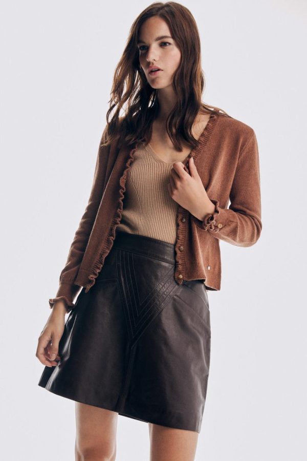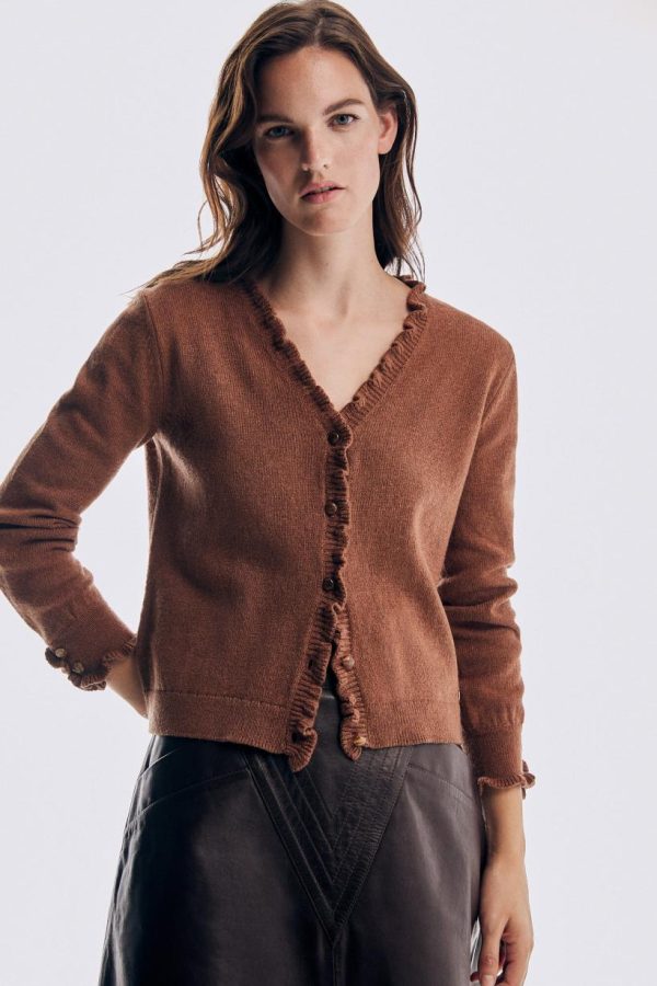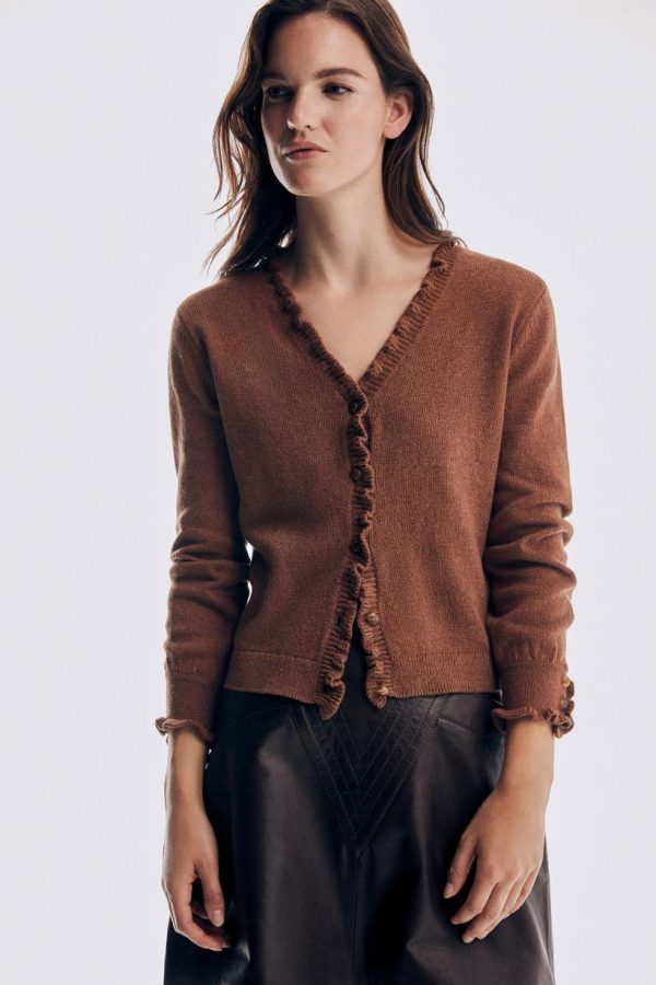 Mujer Pedro Del Hierro Jerséis Y Cárdigans | Chaqueta Volante En Tapeta Y Puño Marrón