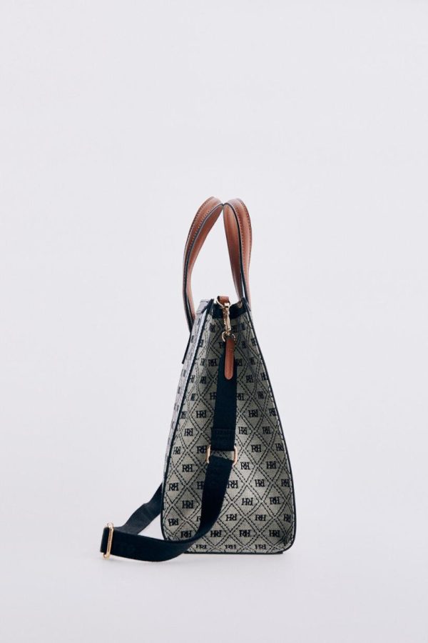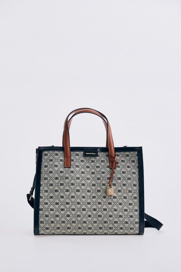 Mujer Pedro Del Hierro Pijamas | Bolso Tote En Jacquard De Logo Y Piel Negro quantity