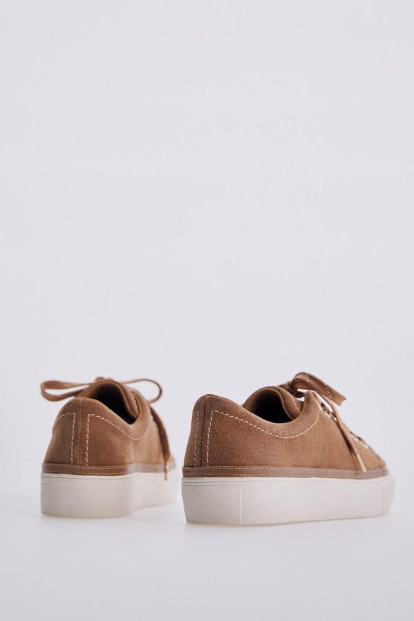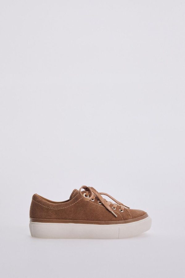 Mujer Pedro Del Hierro Pijamas | Deportiva Sneaker En Piel Anteada Beige