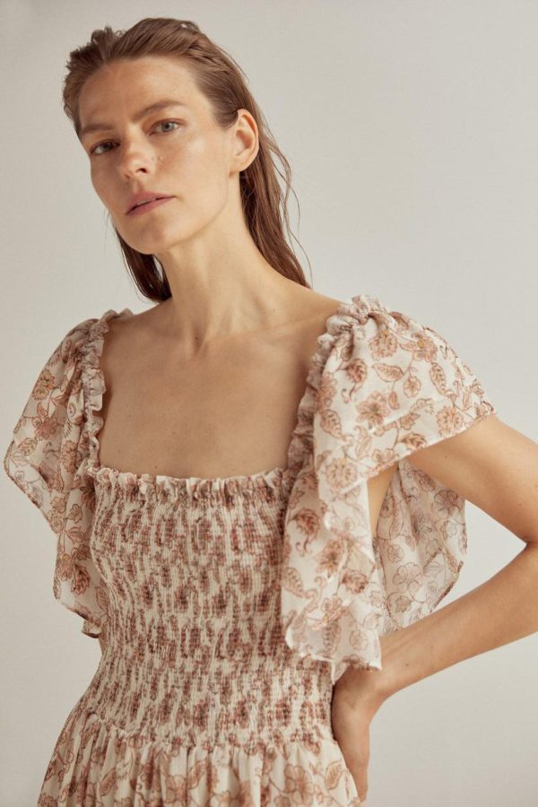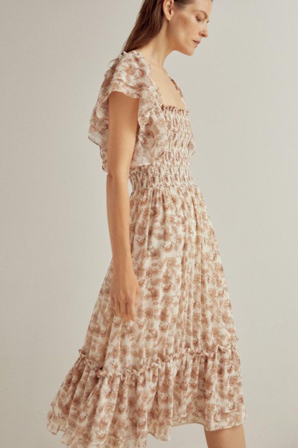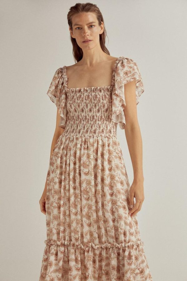 Mujer Pedro Del Hierro Vestidos Y Monos | Vestido Estampado Volante Marfil